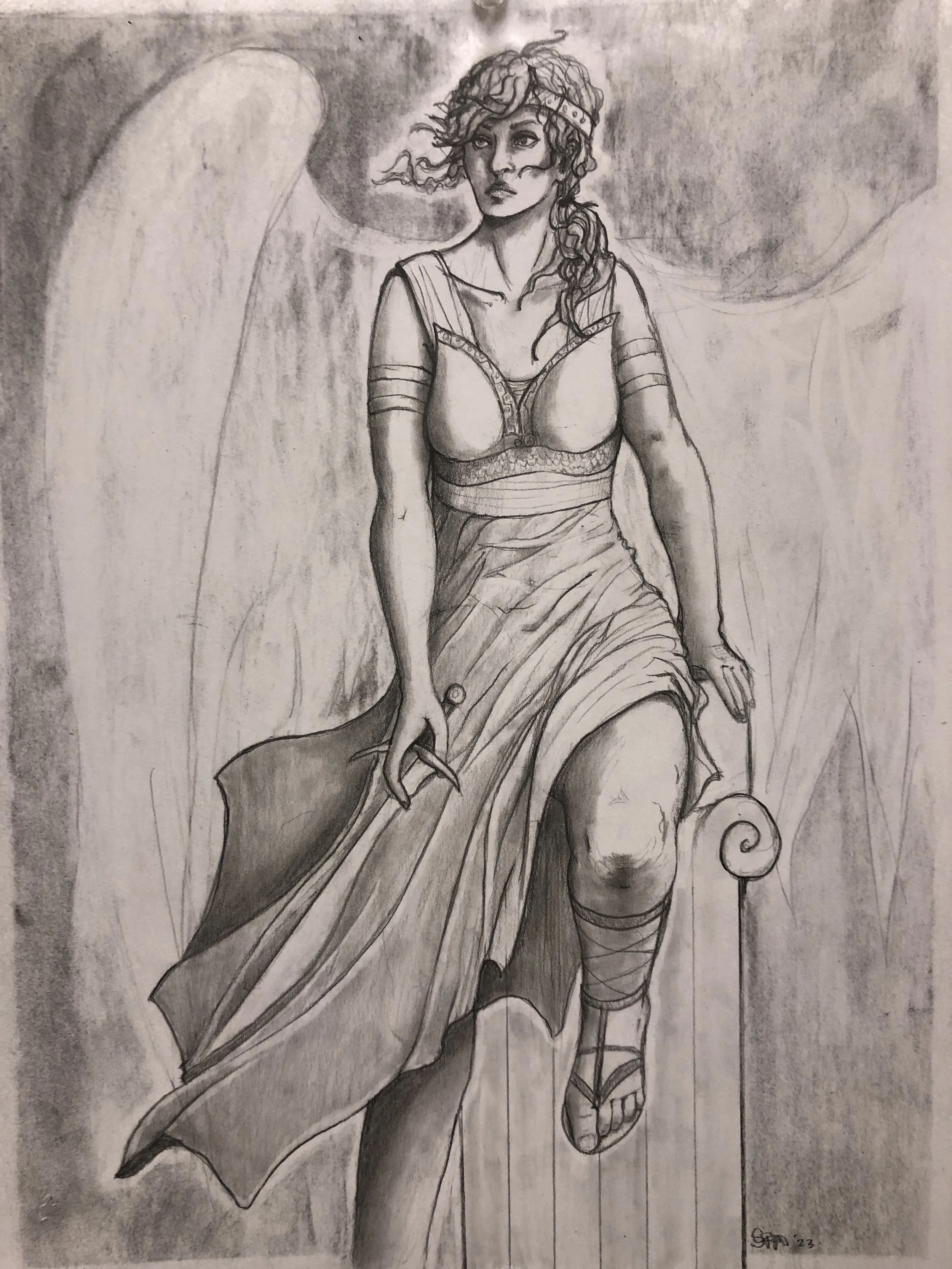 "Nike of Samothrace" 8.5 x 11" Bristol Paper Pencil, Charcoal