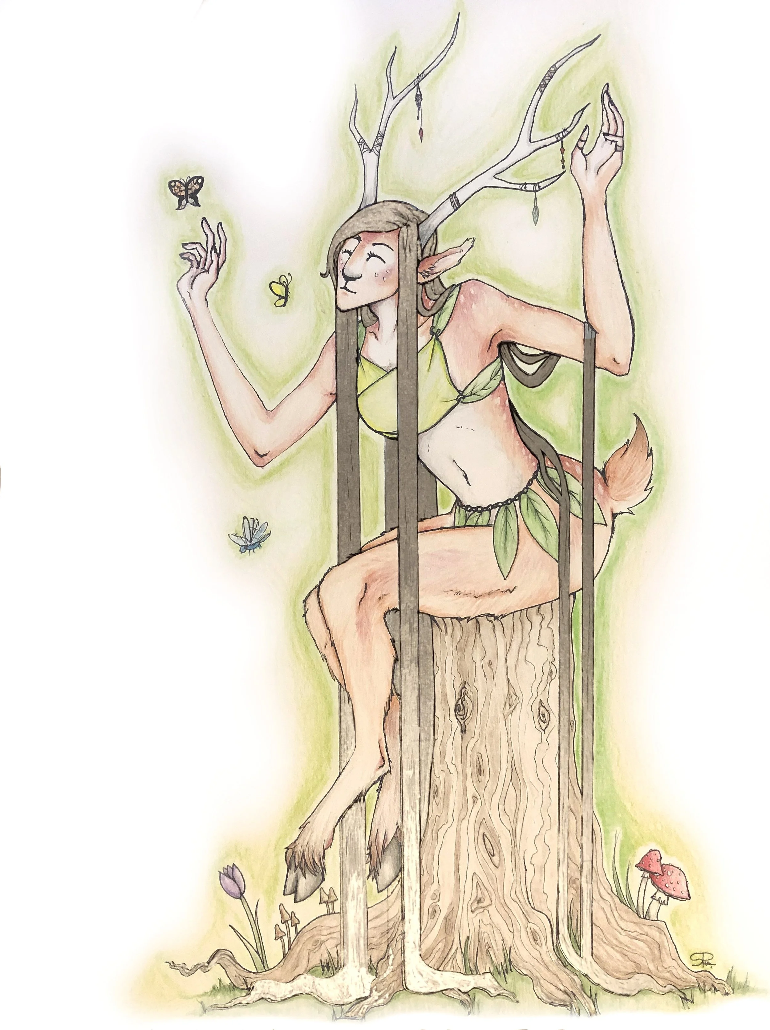 "Doe Spirit" 9 x 12" Bristol 300 Paper Pen, colored pencils, marker
