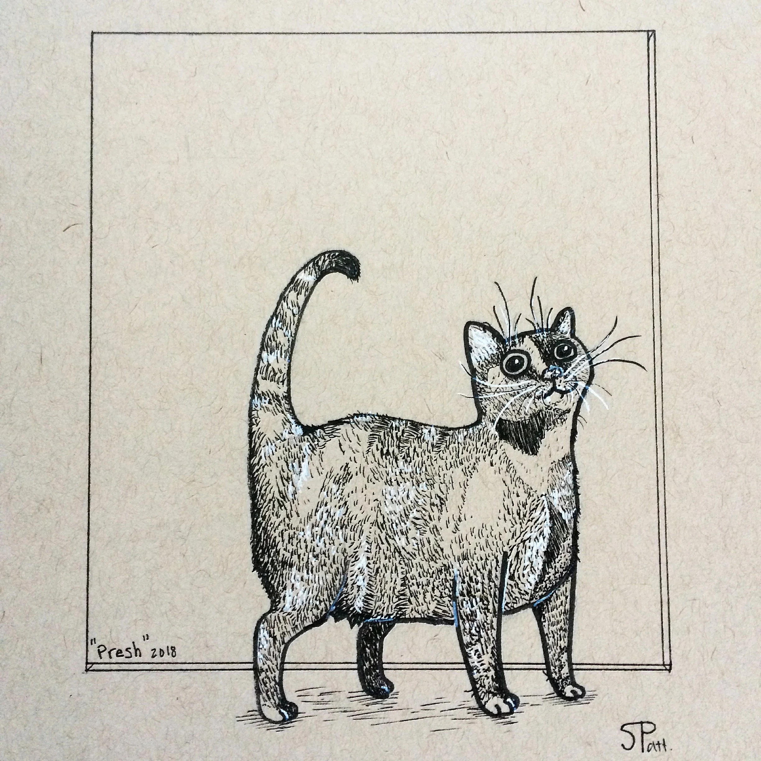 "Prismacolor Pangolin" 8.5 x 11 plain paper mounted on foam board Marker, Pen